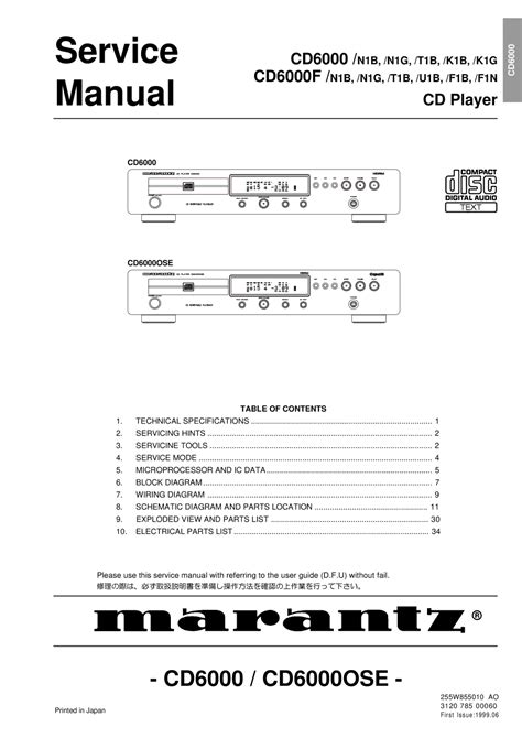 Read service manual marantz cd6000 cd6000ose cd player Library Binding